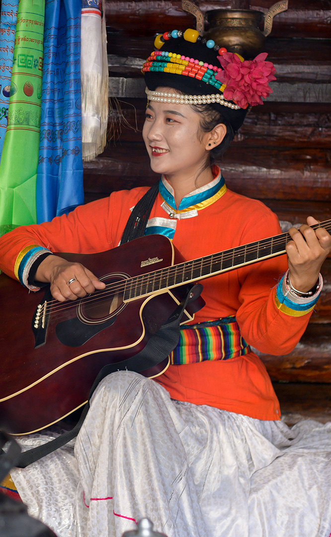 摩梭人是納西族的一個(gè)支系,多聚居在寧蒗縣永寧鄉(xiāng)的瀘沽湖畔,人口約8萬(wàn)。摩梭民居就地取材,用圓木橫壘為墻,建成合院式寨樓居住,這類(lèi)井干式建筑又稱(chēng)木楞房,具有較好的御寒保溫性能,體現(xiàn)了順應(yīng)自然的生態(tài)觀。摩梭人保留了母系大家庭的基本形態(tài),呈現(xiàn)在您眼前的是一個(gè)完整的摩梭家庭的四合院,由正房、經(jīng)堂、花樓、門(mén)樓等構(gòu)成,正房坐北朝南,通稱(chēng)祖母房。居住一家中最年長(zhǎng)的女性,同時(shí)也是一大家人飲食、待客、議事的核心場(chǎng)所...